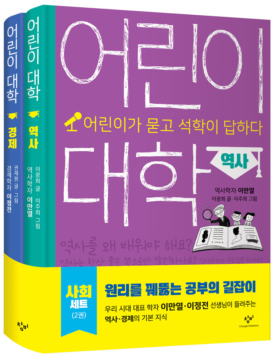 『어린이 대학: 사회 세트』에서는 역사학자 이만열과 경제학자 이정전을 만나 관련 학문에 대한 이야기를 듣는다. 역사학과 경제학은 오늘날 우리 사회가 왜 이런 모습으로 형성되었는지 이해하는 데 핵심적인 학문이다. 어린이가 사회 현상을 다양한 각도에서 살펴보도록 이끌어 주고, 여러 가치관이 상호 충돌하고 사회 갈등이 심화되는 요즘, 공동체가 함께 지켜 나가야 할 가치가 무엇인지 생각하도록 격려한다.