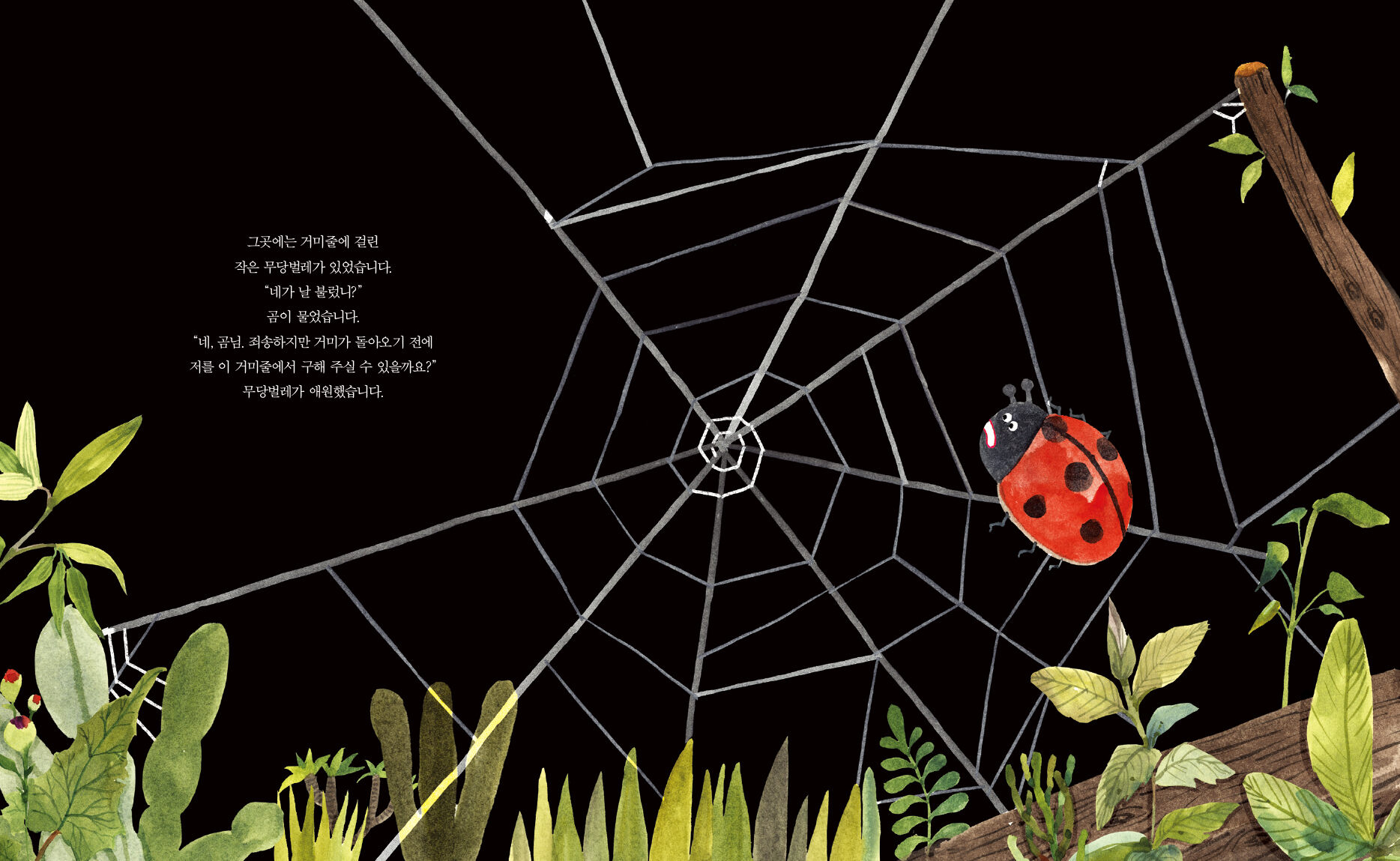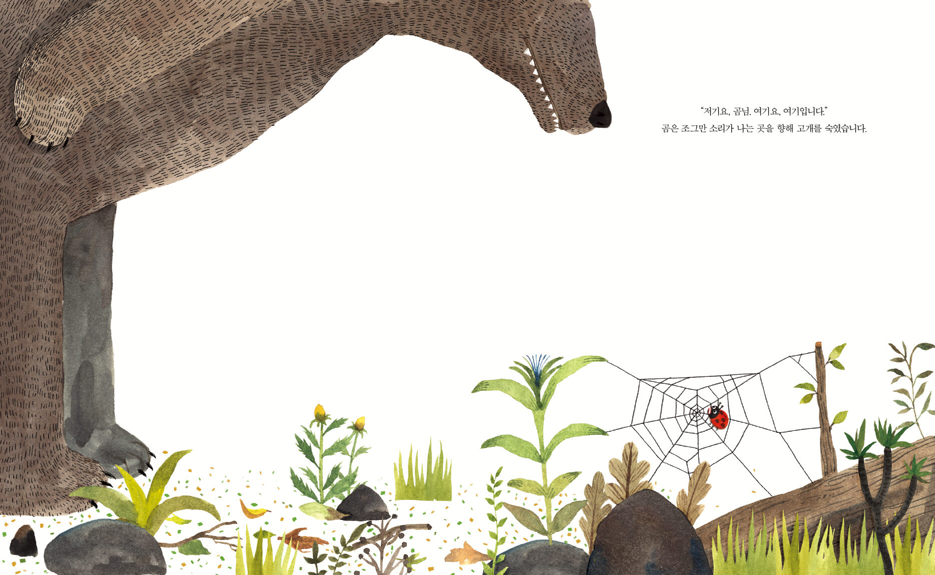 “곰님, 저를 이 거미줄에서 구해 주실 수 있을까요?”