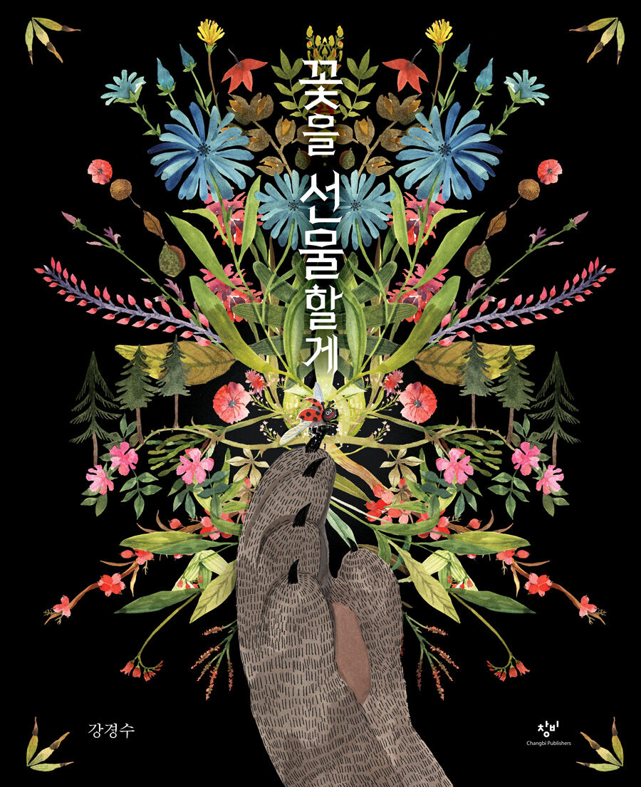 강경수 작가는 고통받는 아이들의 모습을 사실적으로 담아낸 『거짓말 같은 이야기』부터 시공을 초월하며 펼쳐지는 첩보물 ‘코드네임’ 시리즈까지 그림책과 만화와 동화의 경계를 자유자재로 넘나들며 자신만의 이야기를 지어낸다. 『꽃을 선물할게』는 이야기꾼 강경수 작가의 또 다른 면모가 솜씨 좋게 드러난다. 작가는 반복과 점층 그리고 반전의 정교한 짜임을 통해, 보는 관점에 따라 달라지는 입체적인 이야기를 만들어 냈다. 자신이 만들어 낸 이야기가 독자에게 각각의 방식으로 다양하게 읽히길 원하는 작가의 의도를 십분 드러낸다. 작가가 그간 선보인 적 없는 수채화 화풍은 따뜻하고 화사하다. 그러면서도 배경의 강렬한 흑백 대비, 초현실적인 장면 삽입, 극적인 줌과 트리밍으로 영화적인 화면을 만들었다. 『꽃을 선물할게』는 새로운 방식의 그림책 읽는 재미를 선사할 것이다.