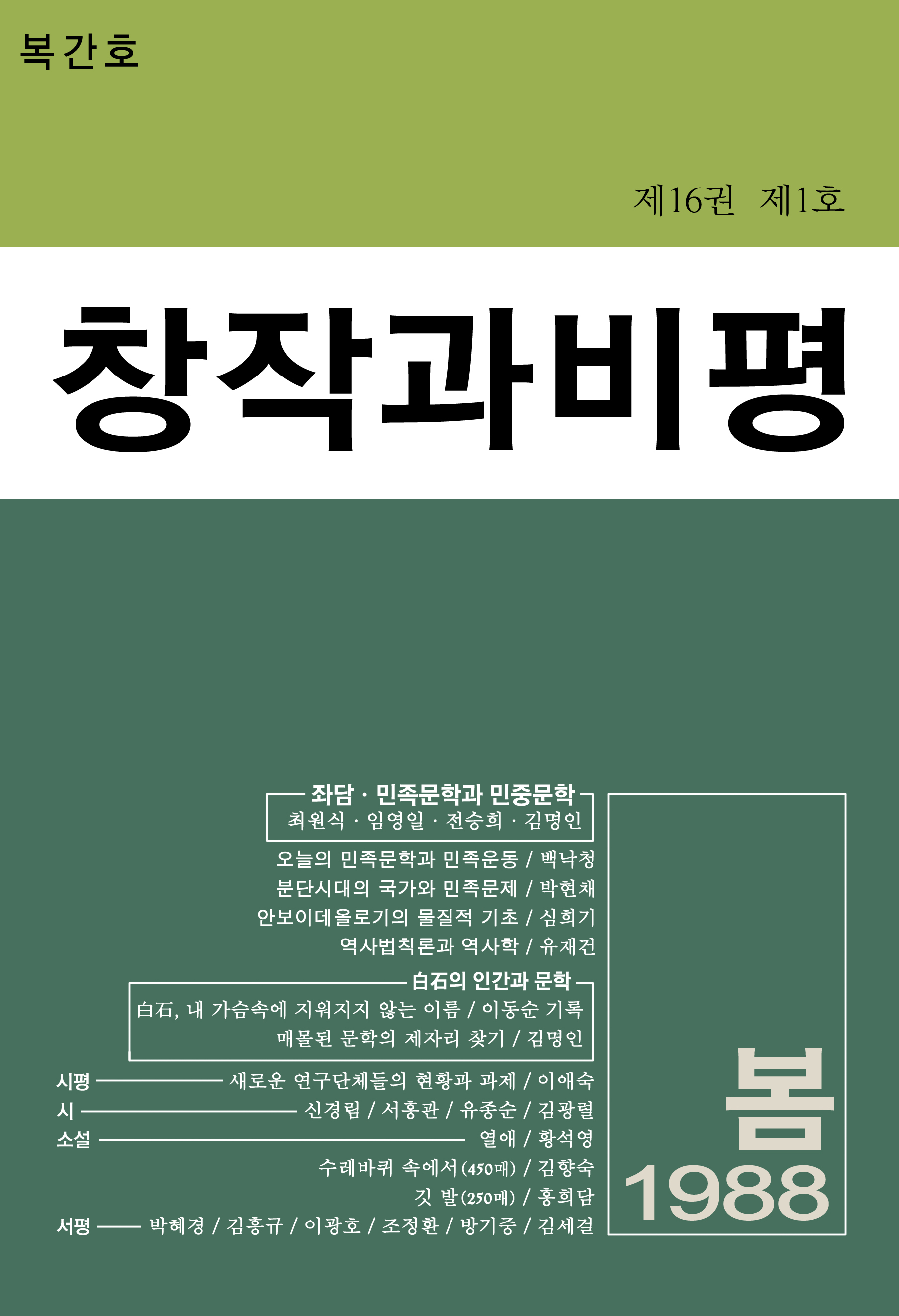 계간 {창작과비평}을 다시 내며 / 백낙청