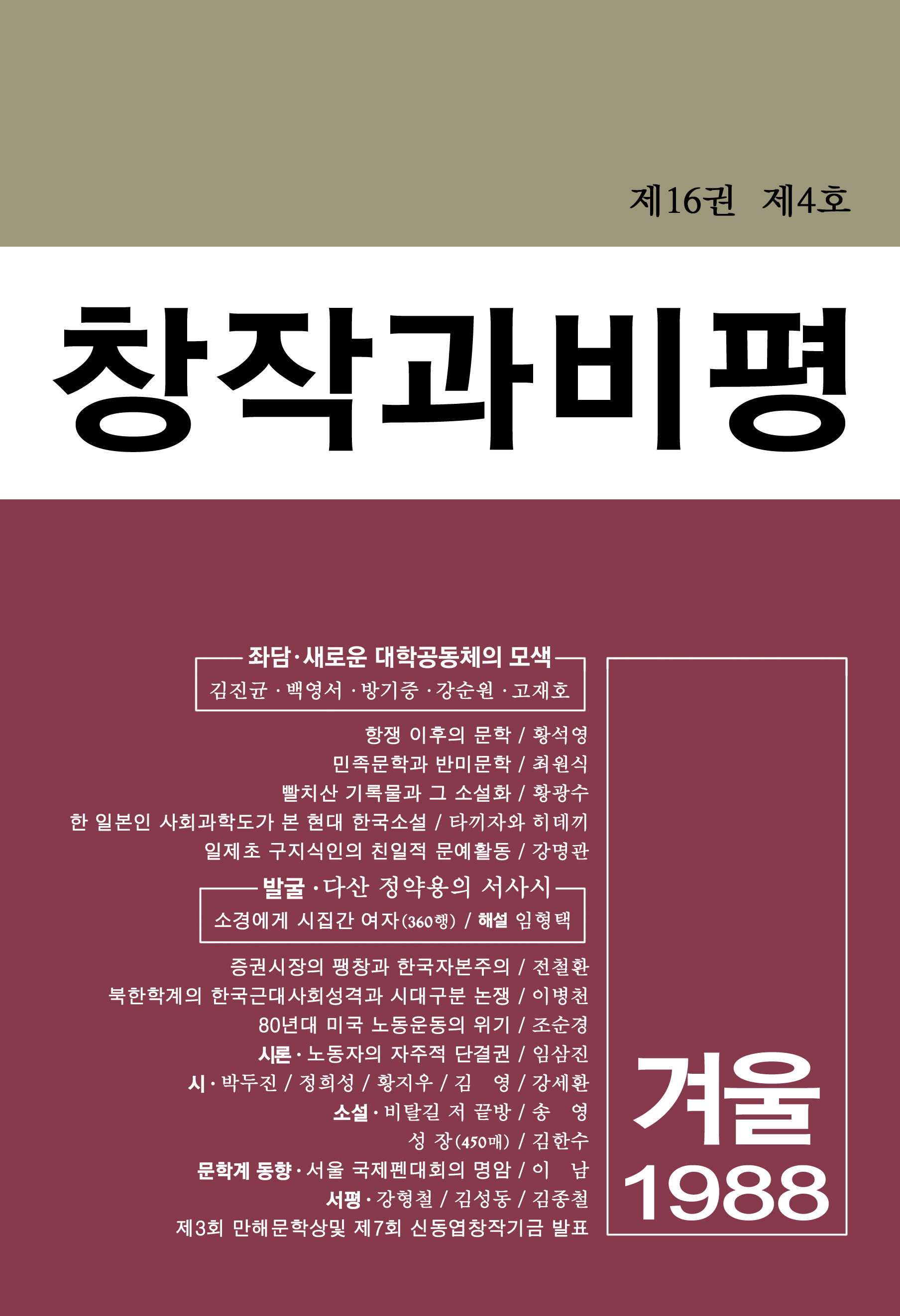 창작과비평 62호(1988년 겨울호)